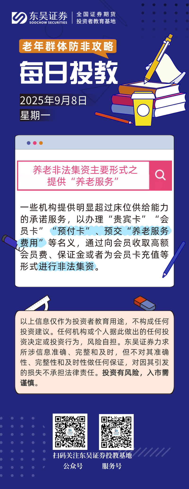 每日投教 | 【2025年09月08日】养老非法集资主要形式之提供“养老服务”