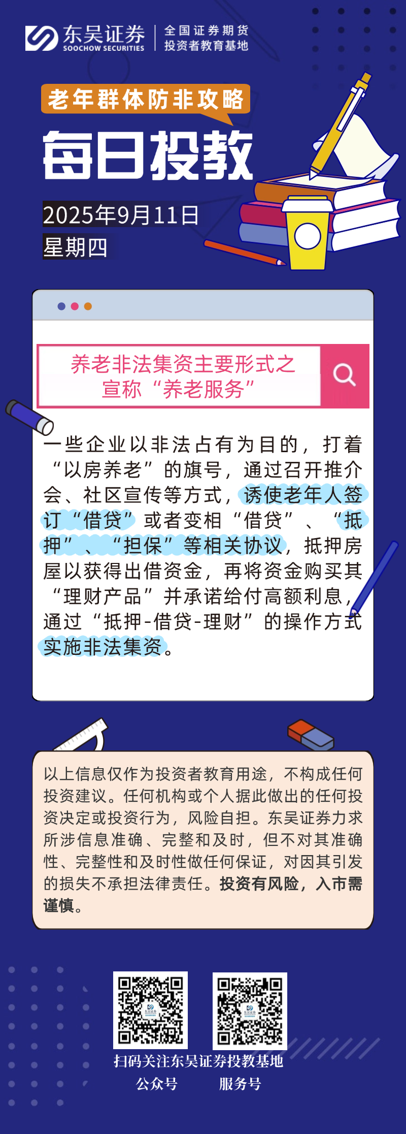 每日投教 | 【2025年09月11日】养老非法集资主要形式之宣称“养老服务”