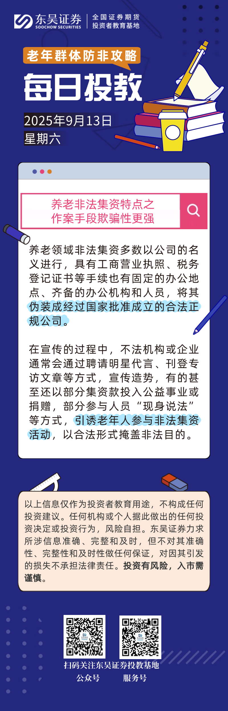 每日投教 | 【2025年09月13日】养老非法集资特点之作案手段欺骗性更强