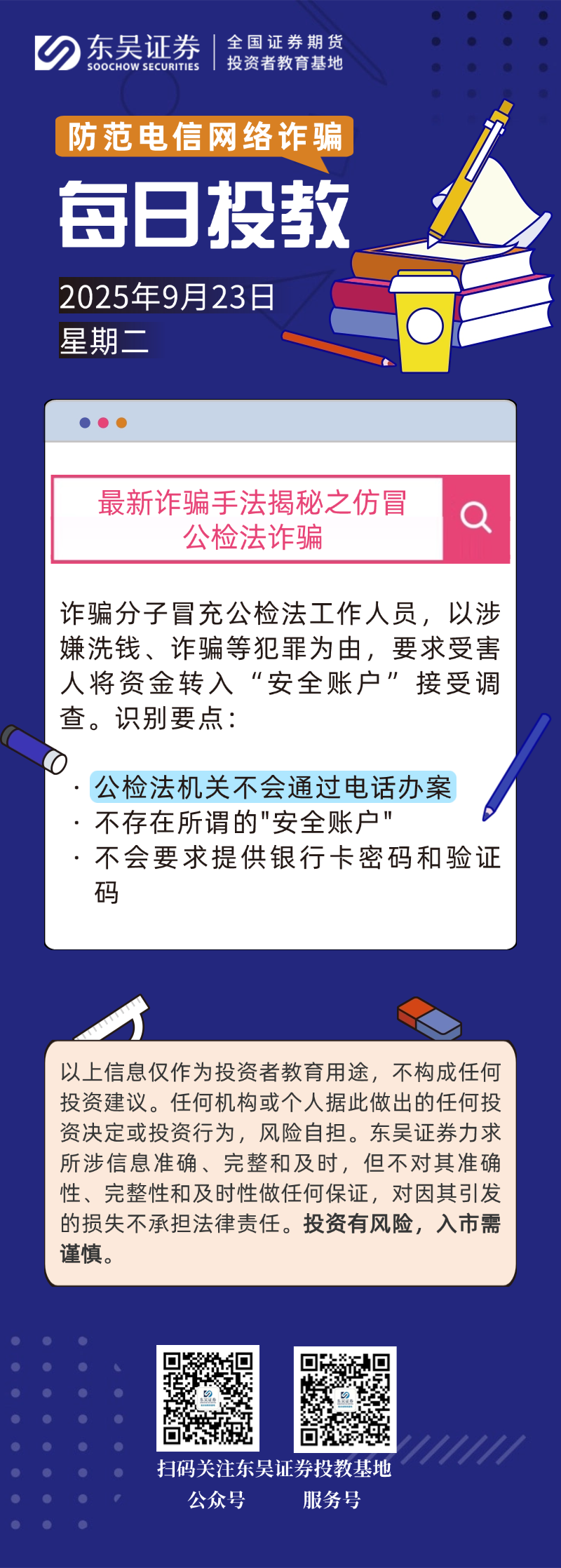 每日投教 | 【2025年09月23日】最新诈骗手法揭秘之仿冒公检法诈骗