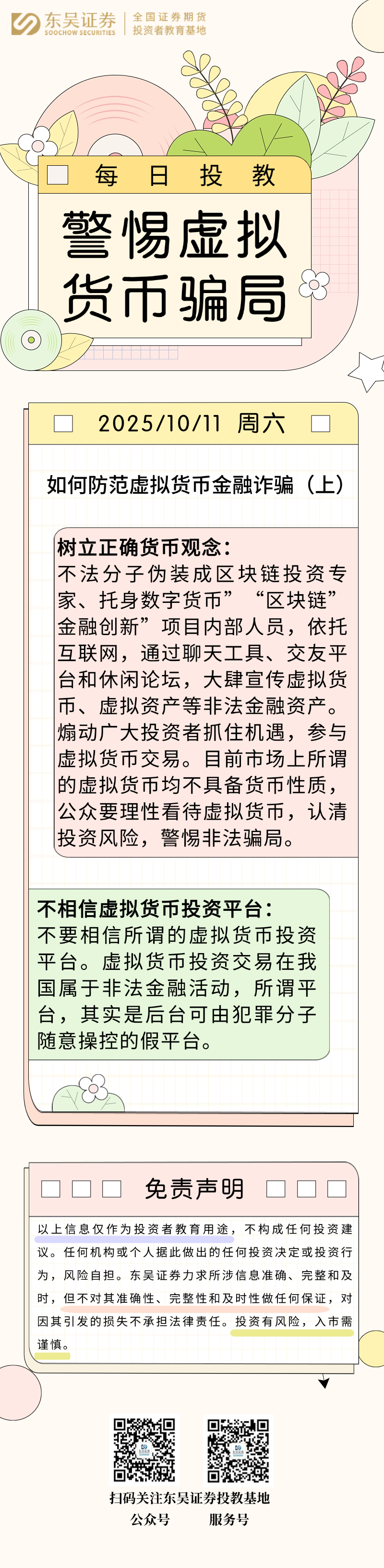 每日投教 | 【2025年10月11日】如何防范虚拟货币金融诈骗(上)