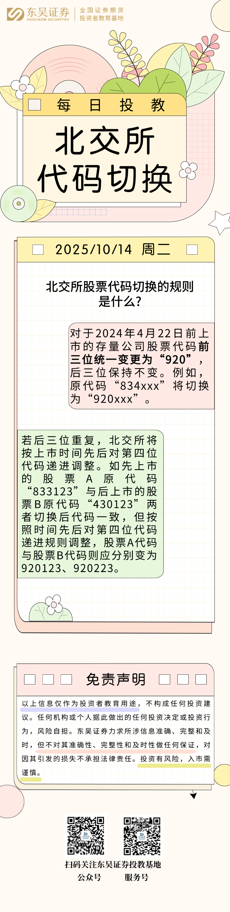 每日投教 | 【2025年10月14日】北交所股票代码切换的规则是什么?