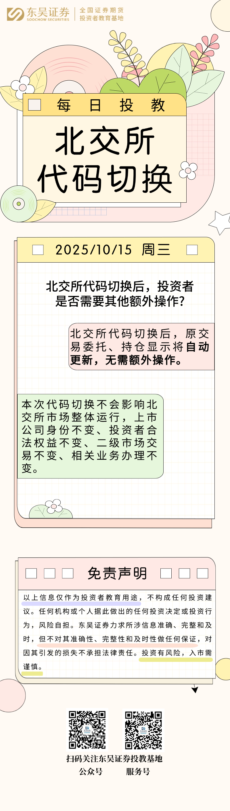 每日投教 | 【2025年10月15日】北交所代码切换后,投资者是否需要其他额外操作?