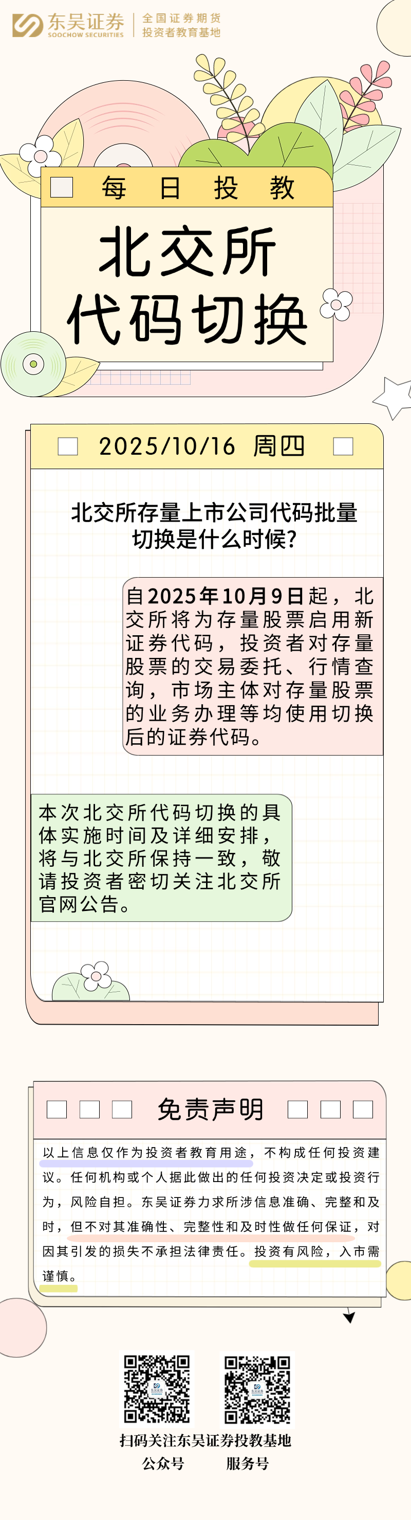 每日投教 | 【2025年10月16日】北交所存量上市公司代码批量切换是什么时候?