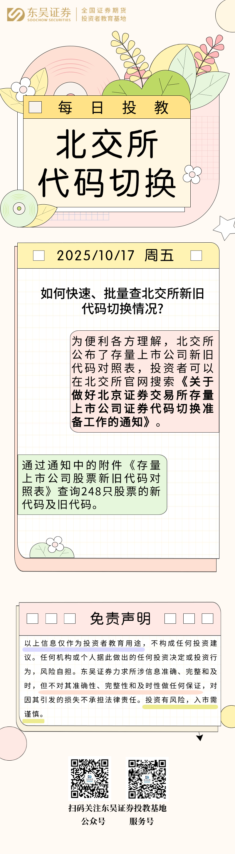 每日投教 | 【2025年10月17日】如何快速、批量查北交所新旧代码切换情况?