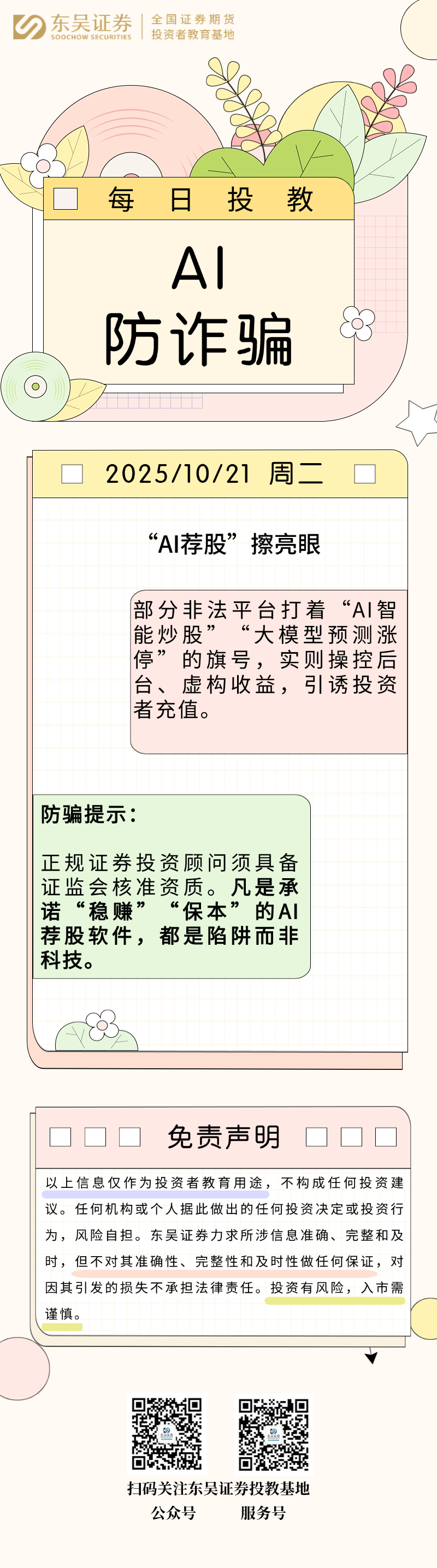 每日投教 | 【2025年10月21日】“AI荐股”擦亮眼