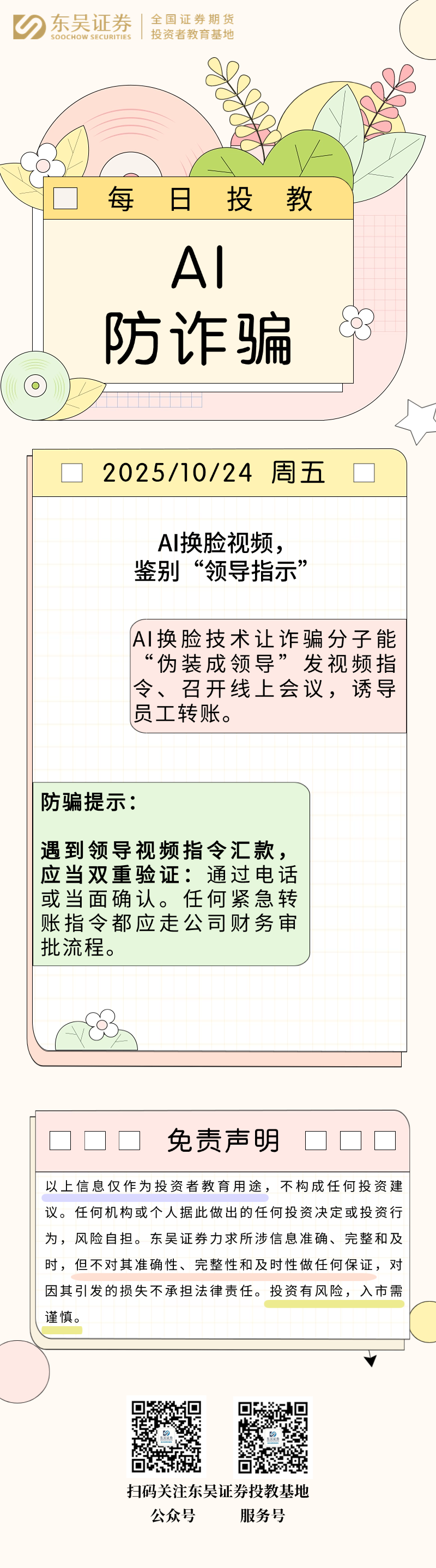 每日投教 | 【2025年10月24日】AI换脸视频,鉴别“领导指示”