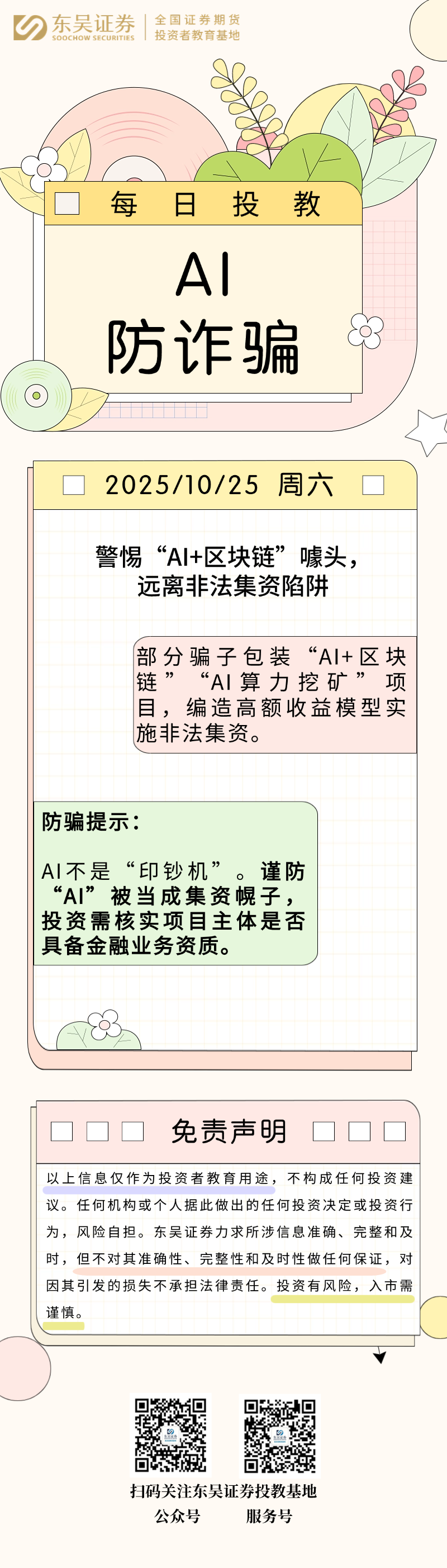 每日投教 | 【2025年10月25日】警惕“AI+区块链”噱头,远离非法集资陷阱