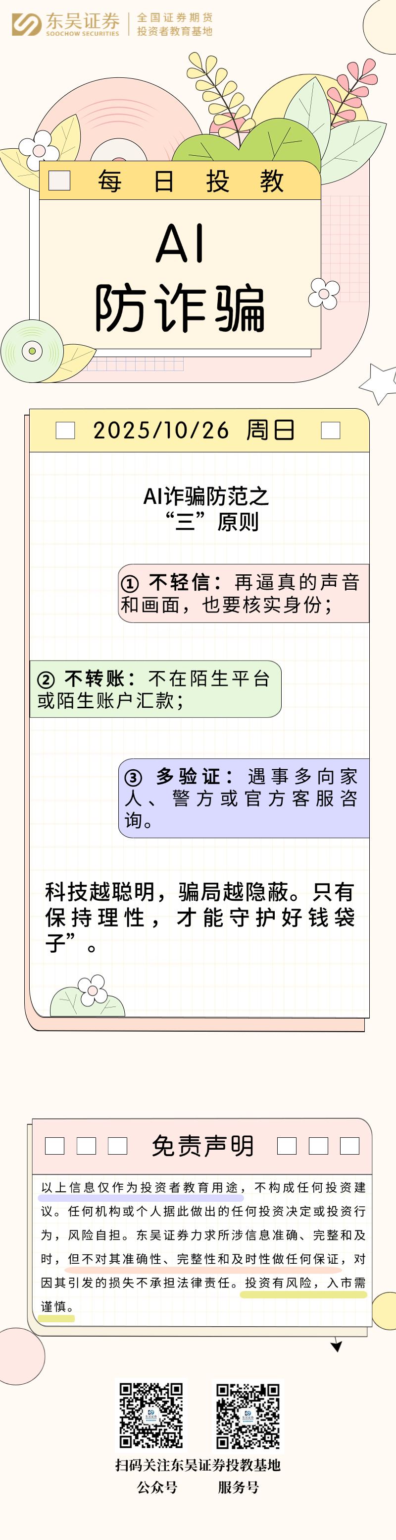 每日投教 | 【2025年10月26日】AI诈骗防范之“三”原则