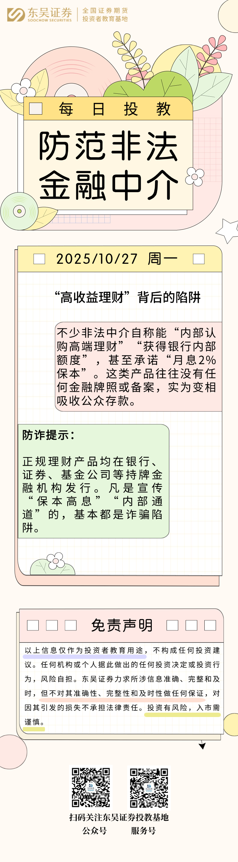 每日投教 | 【2025年10月27日】“高收益理财”背后的陷阱