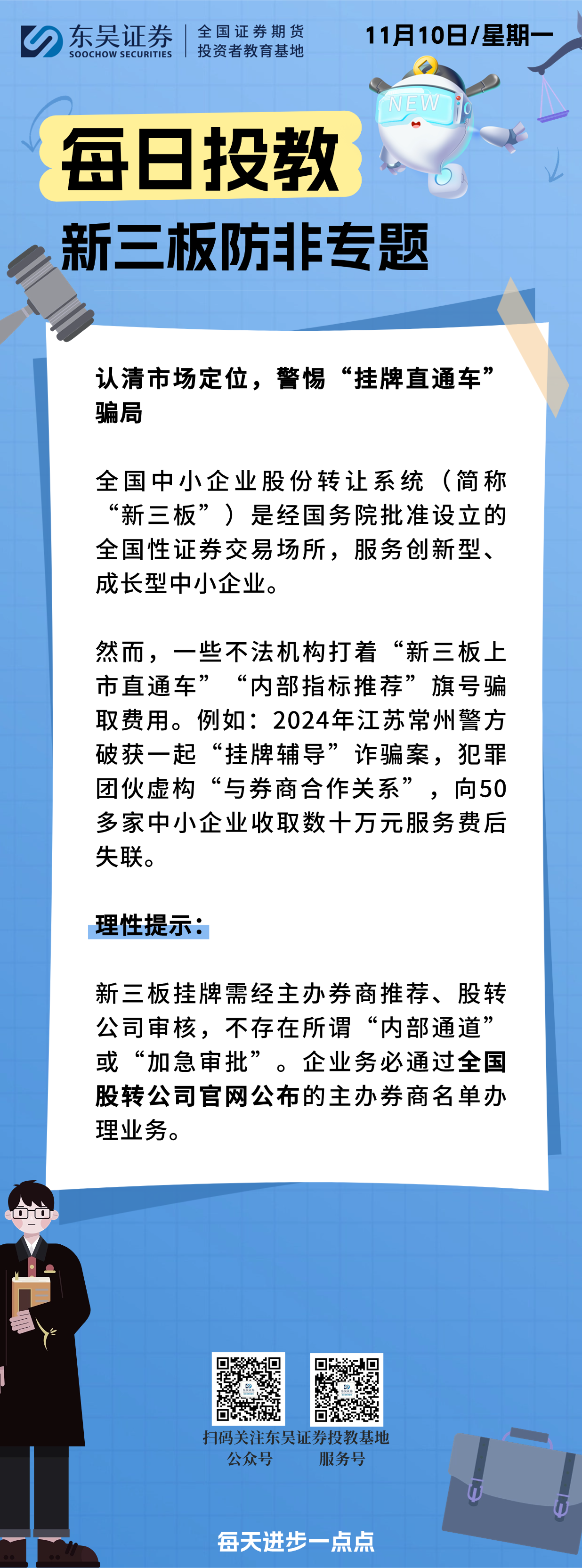 每日投教 | 【2025年11月10日】认清市场定位,警惕“挂牌直通车”骗局