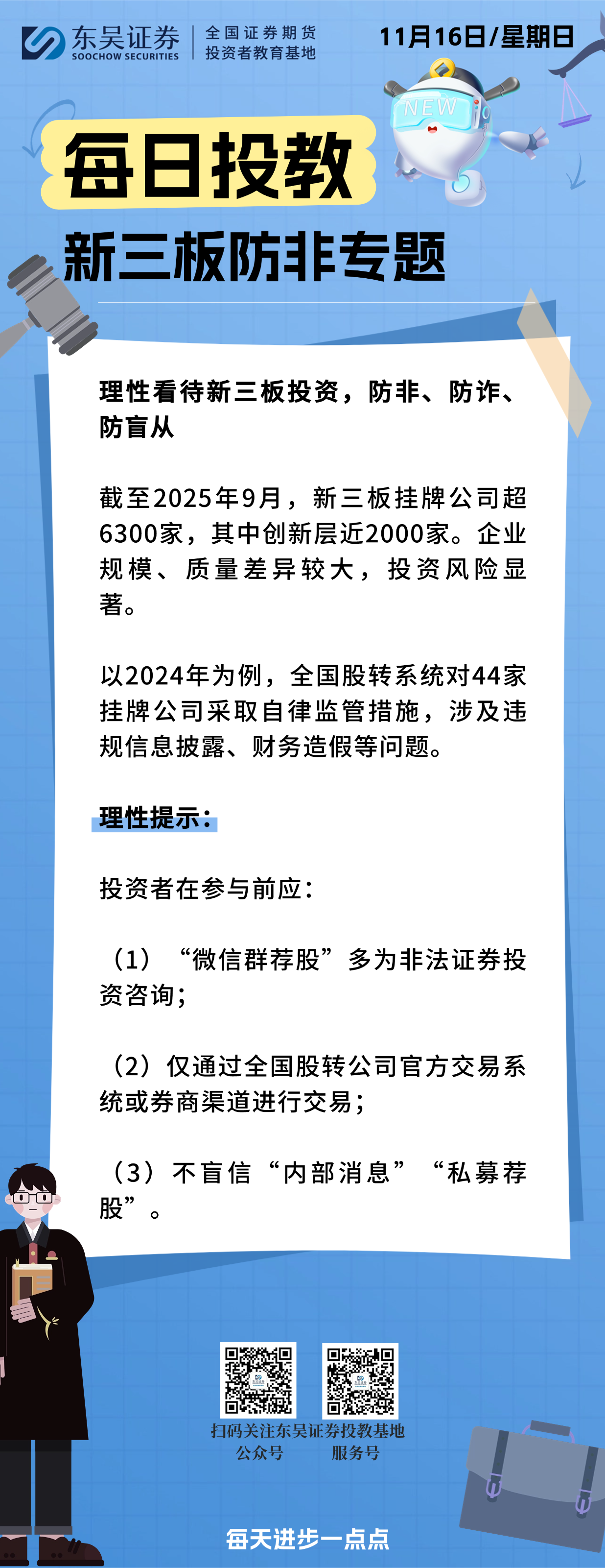 每日投教 | 【2025年11月16日】理性看待新三板投资,防非、防诈、防盲从
