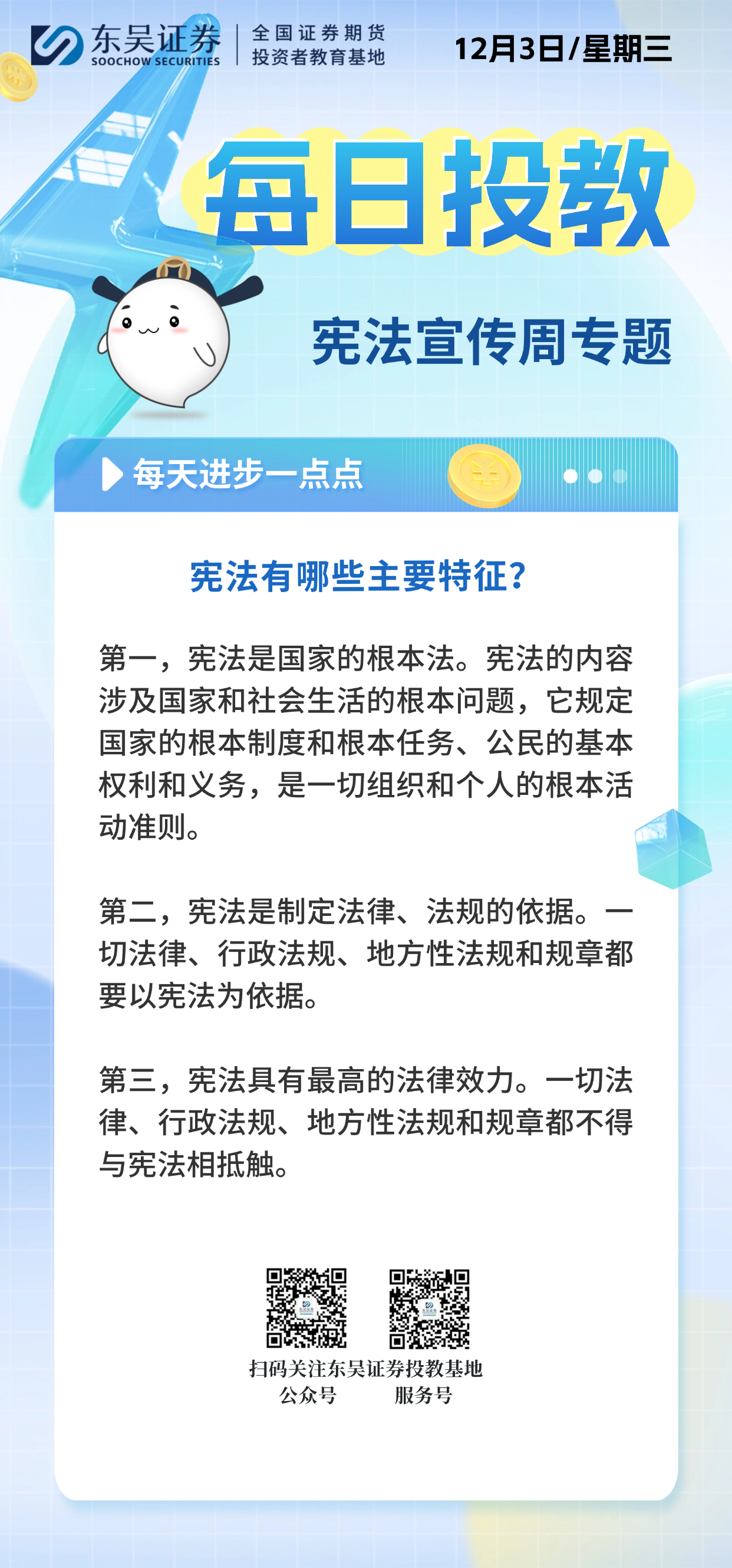 每日投教 | 【2025年12月03日】宪法有哪些主要特征?