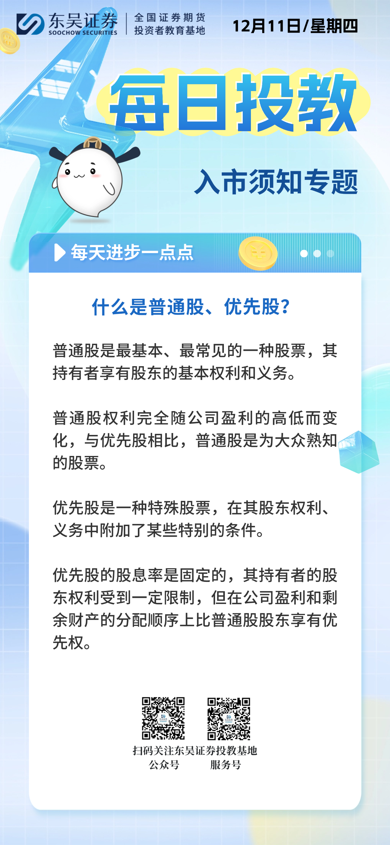 每日投教 | 【2025年12月11日】什么是普通股、优先股?
