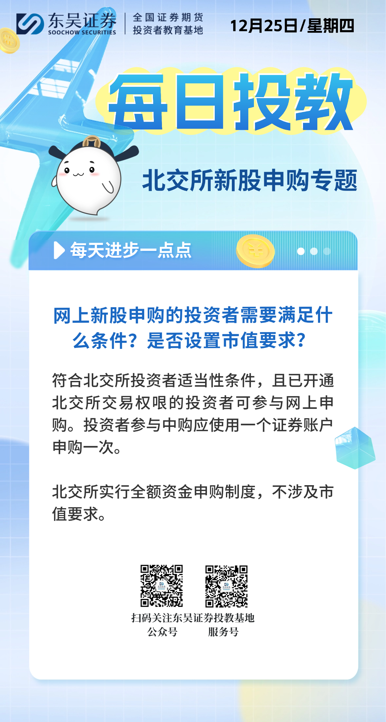 每日投教 | 【2025年12月25日】网上新股申购的投资者需要满足什么条件?是否设置市值要求?