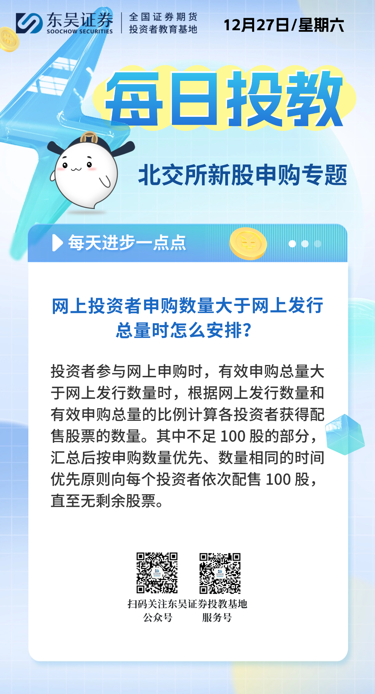 每日投教 | 【2025年12月27日】网上投资者申购数量大于网上发行总量时怎么安排?
