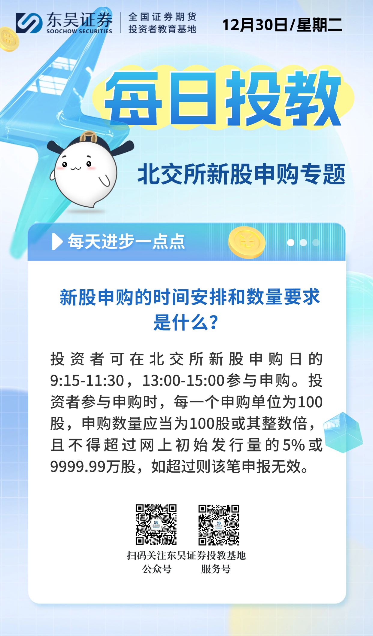 每日投教 | 【2025年12月30日】新股申购的时间安排和数量要求是什么?
