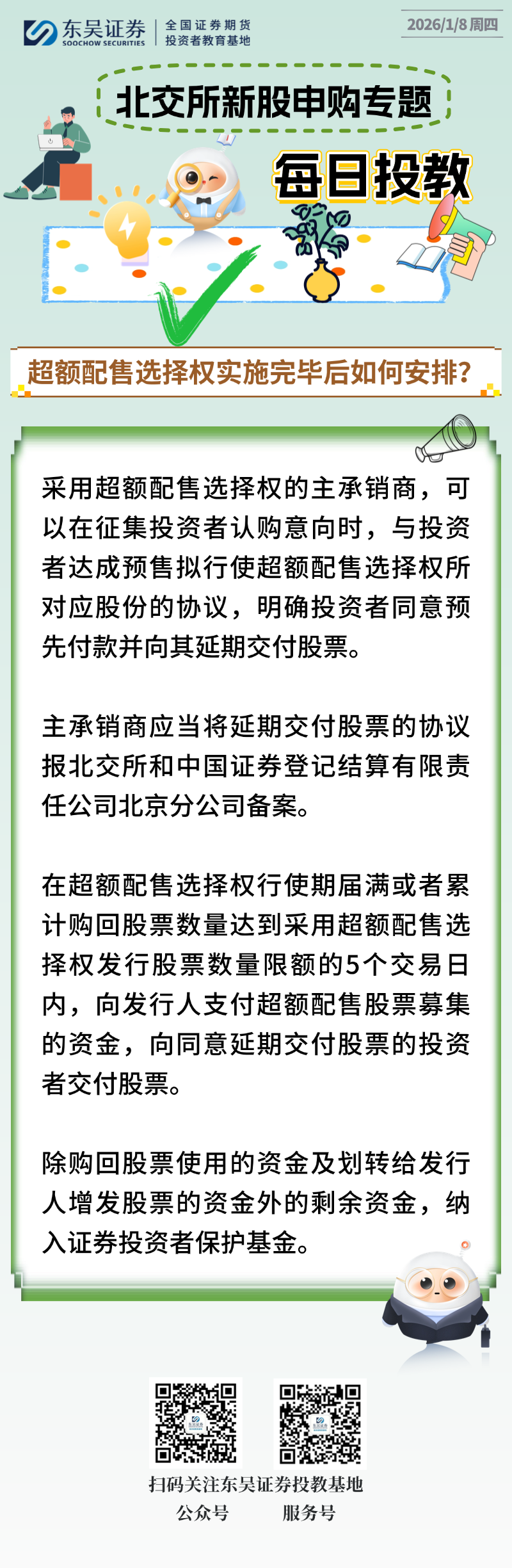 每日投教 | 【2026年01月08日】超额配售选择权实施完毕后如何安排?