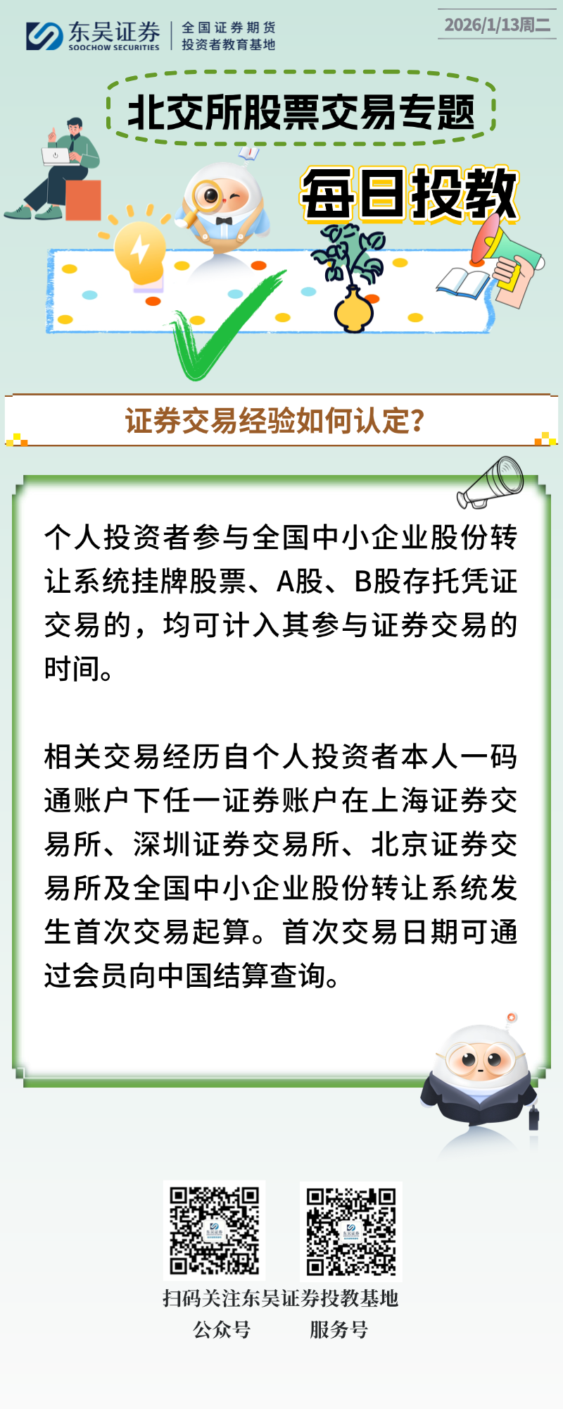 每日投教 | 【2026年01月13日】证券交易经验如何认定?