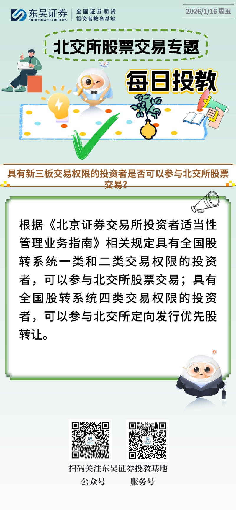 每日投教 | 【2026年01月16日】具有新三板交易权限的投资者是否可以参与北交所股票交易?