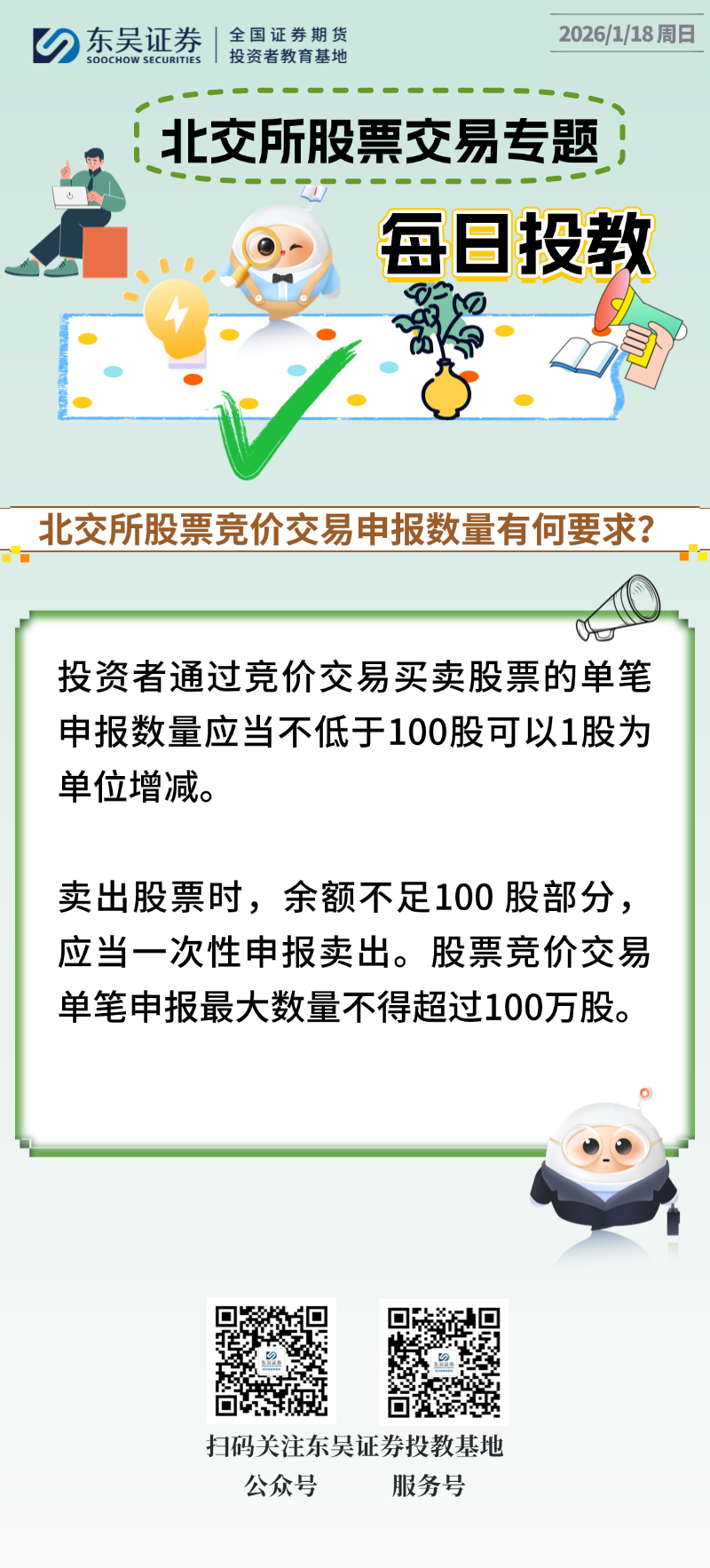 每日投教 | 【2026年01月18日】北交所股票竞价交易申报数量有何要求?