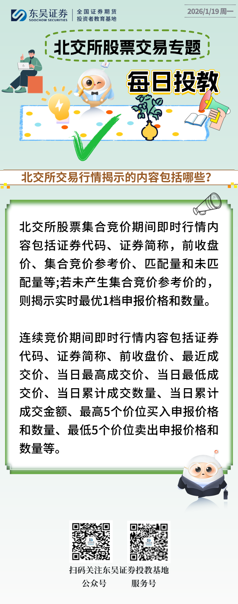 每日投教 | 【2026年01月19日】北交所交易行情揭示的内容包括哪些?