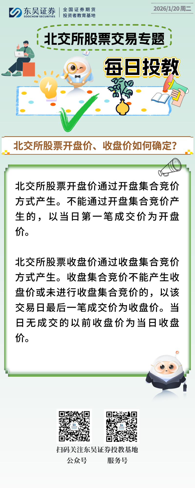 每日投教 | 【2026年01月20日】北交所股票开盘价、收盘价如何确定?