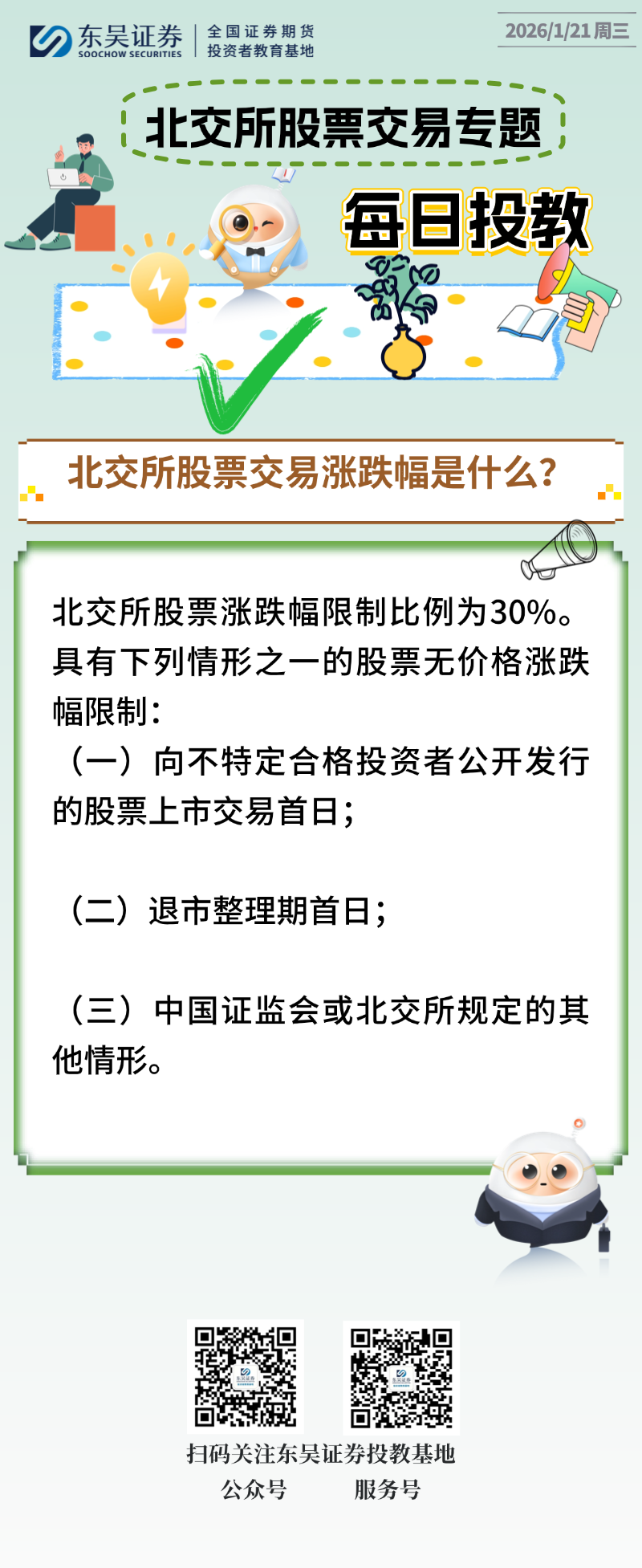 每日投教 | 【2026年01月21日】北交所股票交易涨跌幅是什么?