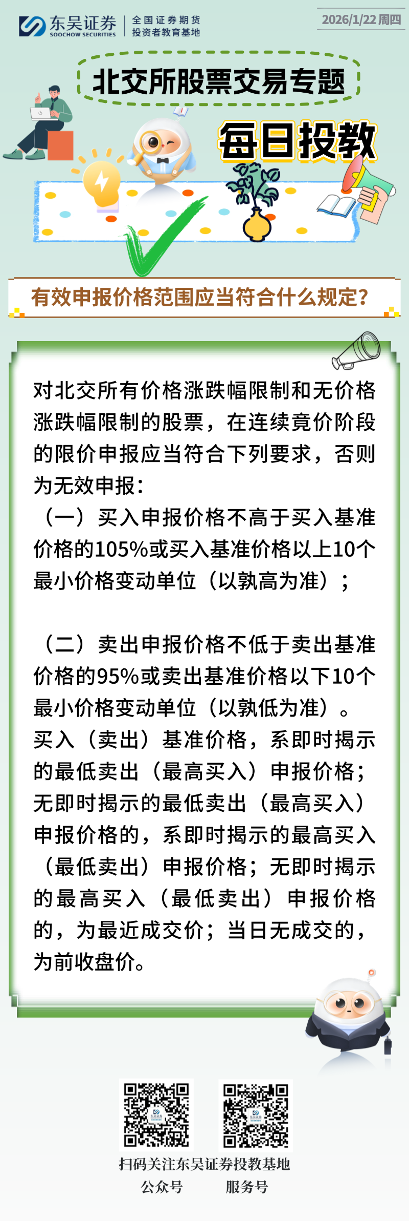 每日投教 | 【2026年01月22日】有效申报价格范围应当符合什么规定?