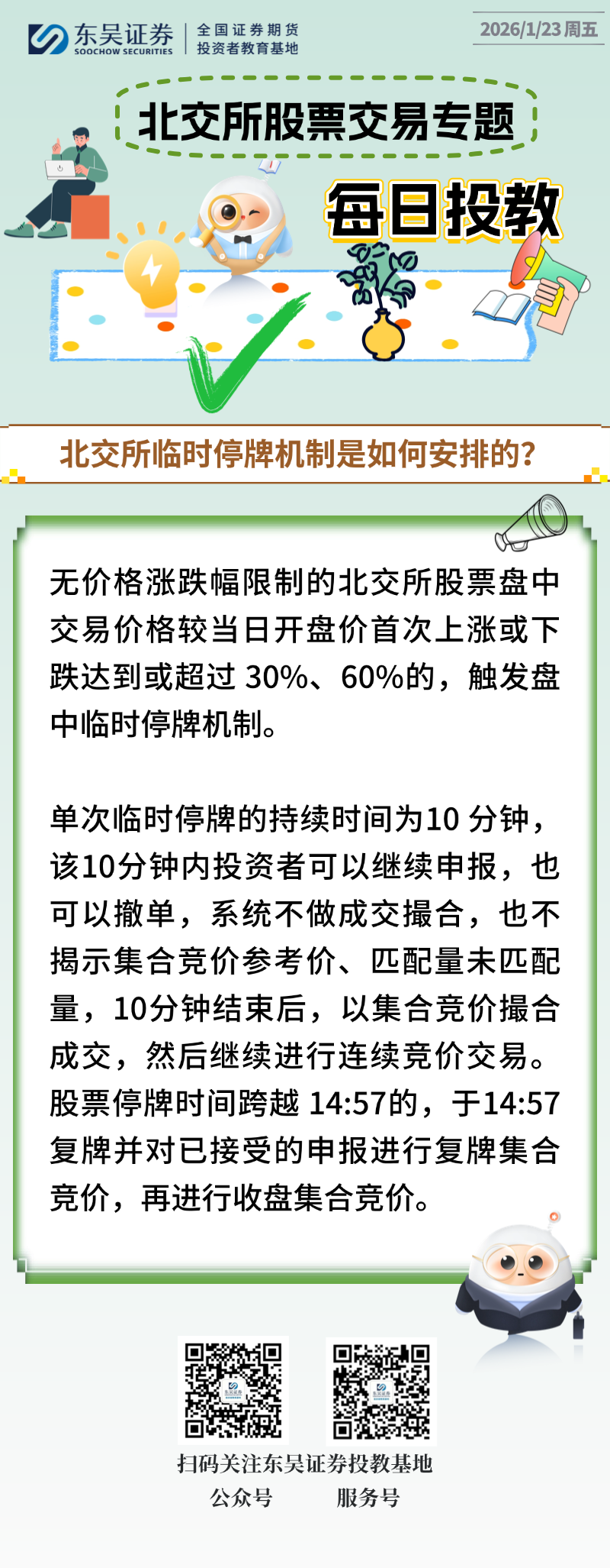 每日投教 | 【2026年01月23日】北交所临时停牌机制是如何安排的?