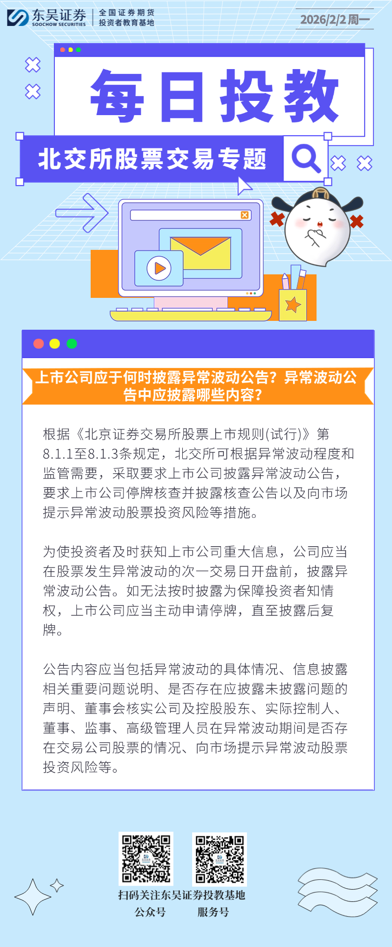 每日投教 | 【2026年02月02日】上市公司应于何时披露异常波动公告?异常波动公告中应披露哪些内容?