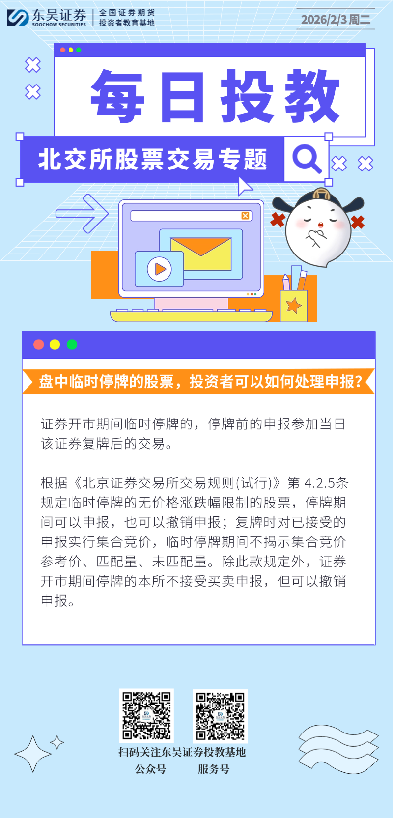 每日投教 | 【2026年02月03日】盘中临时停牌的股票,投资者可以如何处理申报?