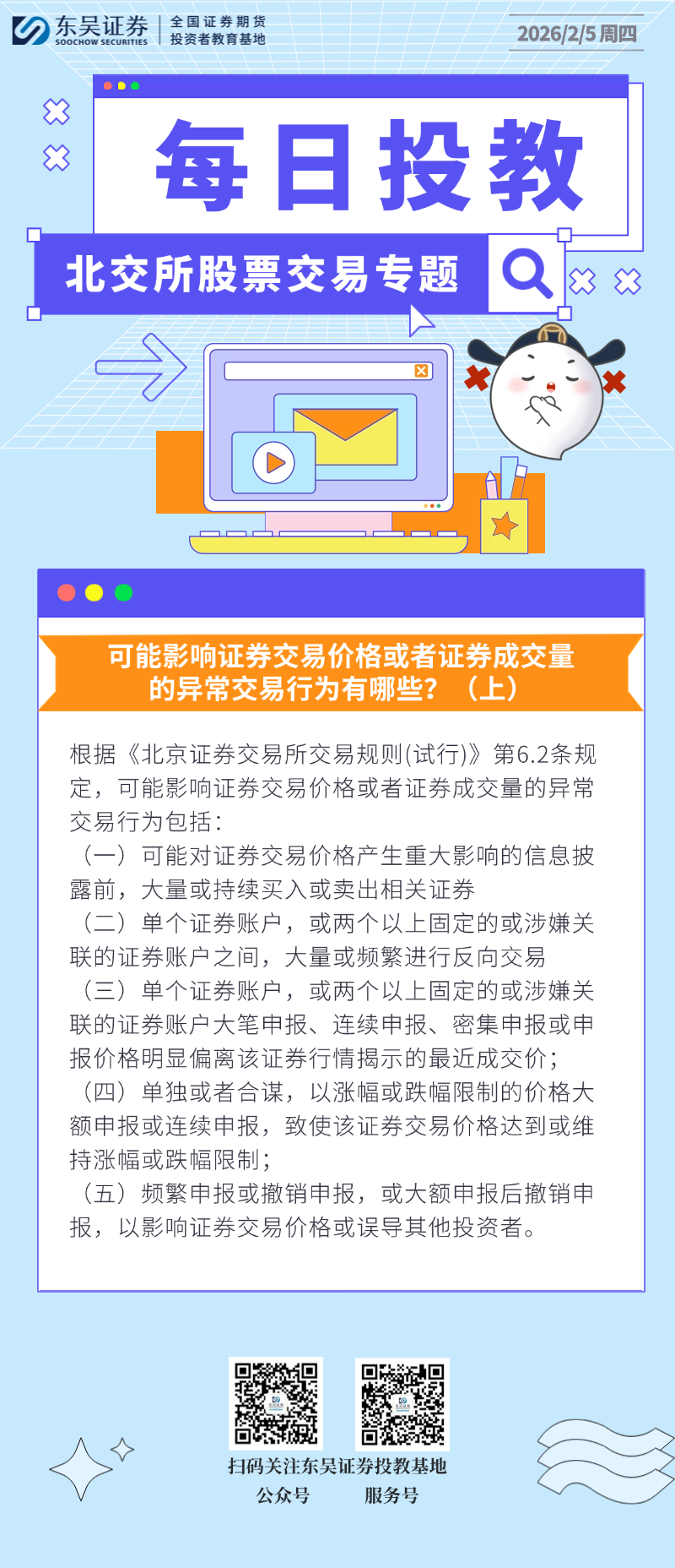每日投教 | 【2026年02月05日】可能影响证券交易价格或者证券成交量的异常交易行为有哪些?(上)