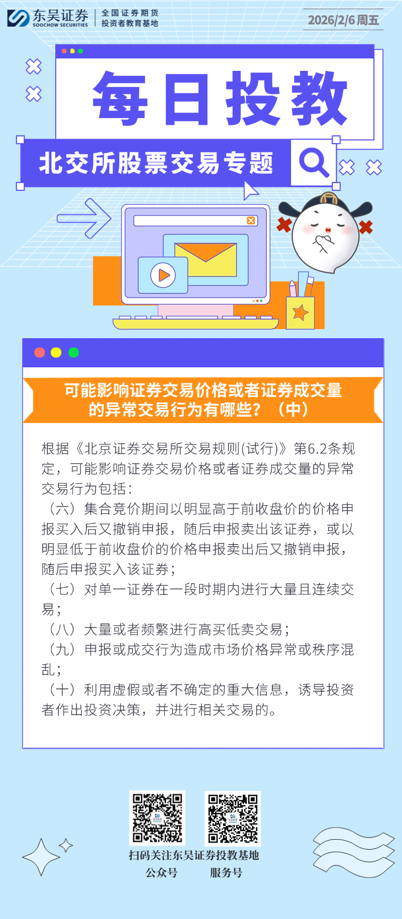 每日投教 | 【2026年02月06日】可能影响证券交易价格或者证券成交量的异常交易行为有哪些?(中)