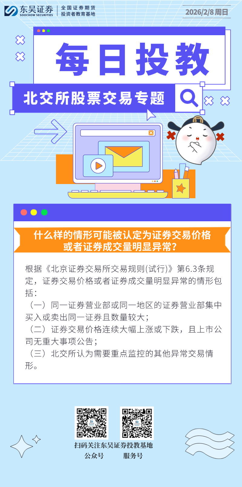每日投教 | 【2026年02月08日】什么样的情形可能被认定为证券交易价格或者证券成交量明显异常?