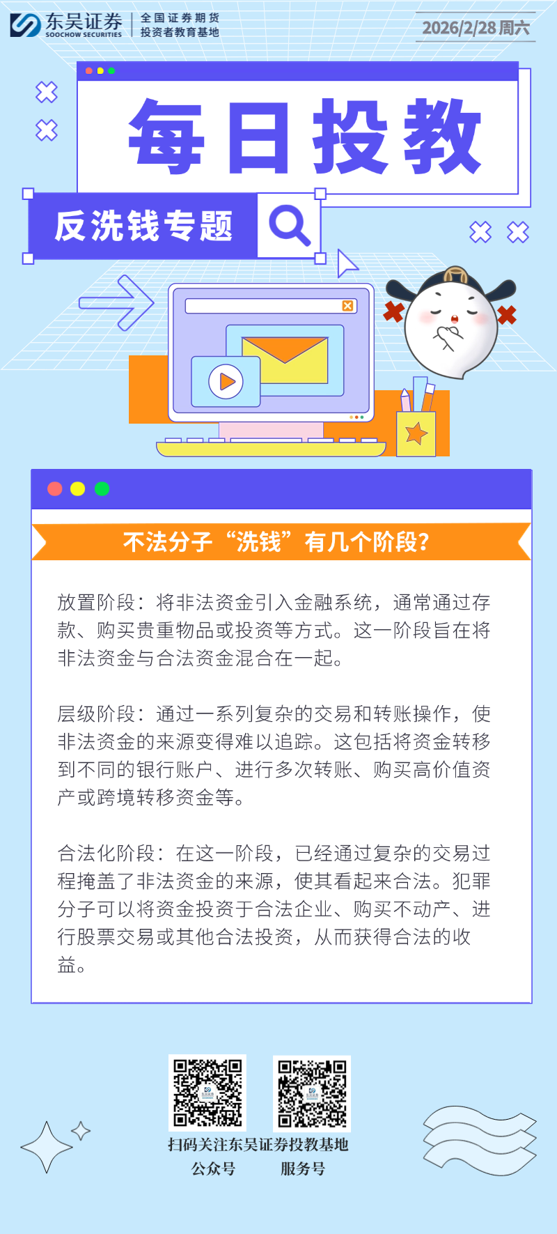 每日投教 | 【2026年02月28日】不法分子“洗钱”有几个阶段?