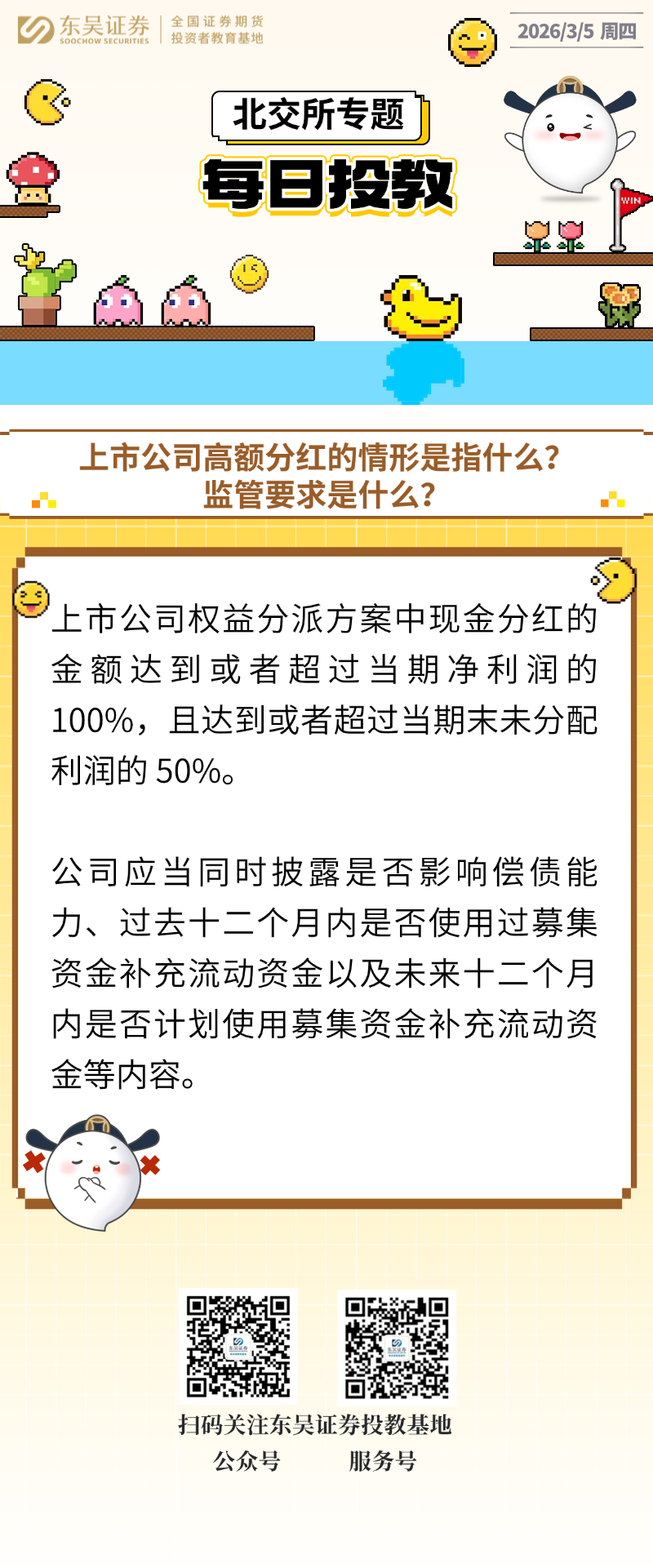 每日投教 | 【2026年03月05日】上市公司高额分红的情形是指什么? 监管要求是什么?