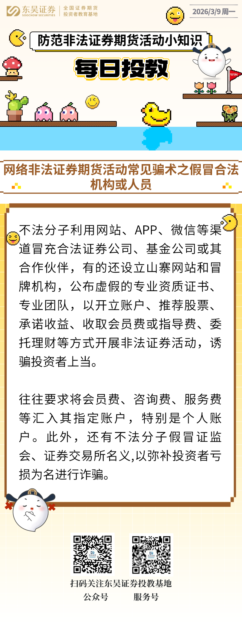 每日投教 | 【2026年03月09日】网络非法证券期货活动常见骗术之假冒合法机构或人员