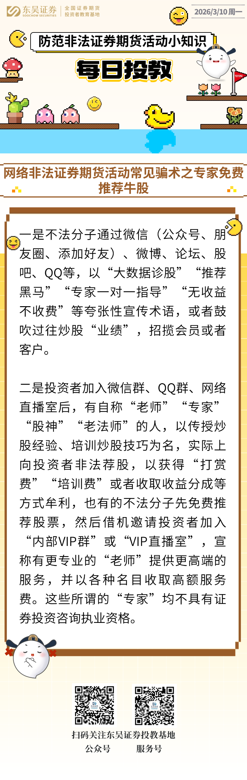 每日投教 | 【2026年03月10日】网络非法证券期货活动常见骗术之专家免费推荐牛股
