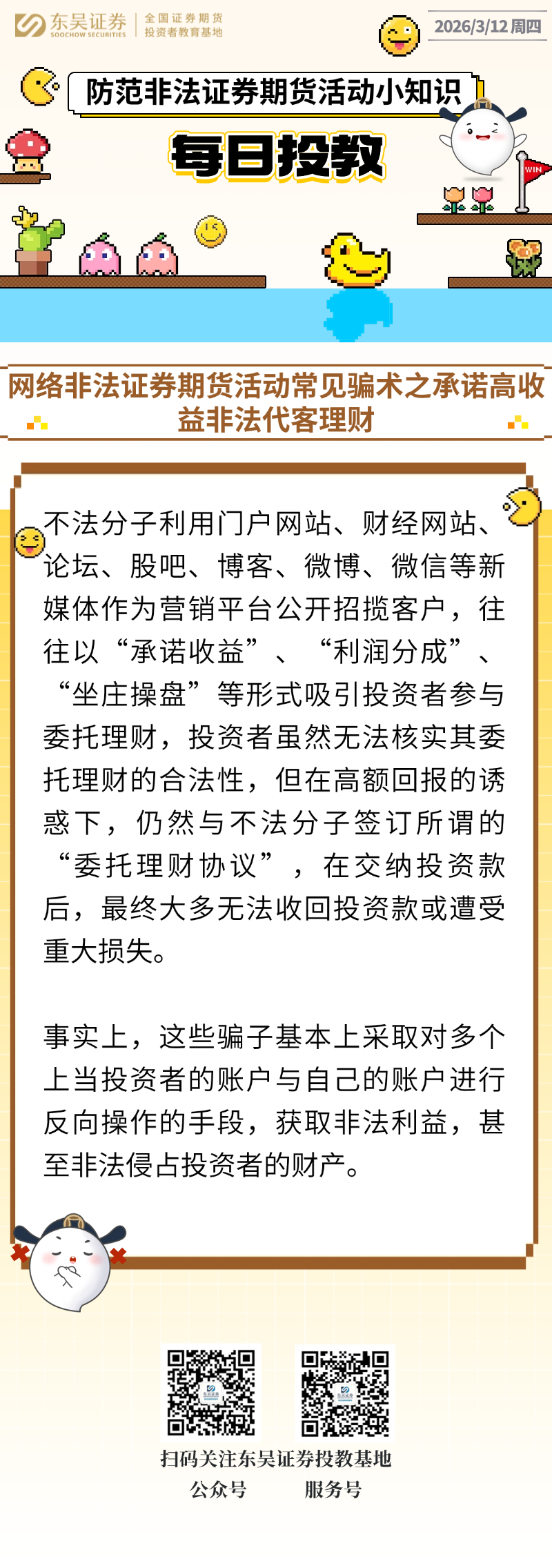 每日投教 | 【2026年03月12日】网络非法证券期货活动常见骗术之承诺高收益非法代客理财