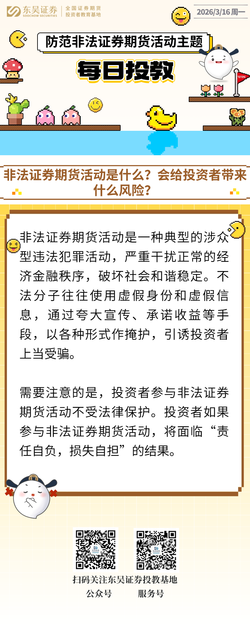 每日投教 | 【2026年03月16日】非法证券期货活动是什么?会给投资者带来什么风险?
