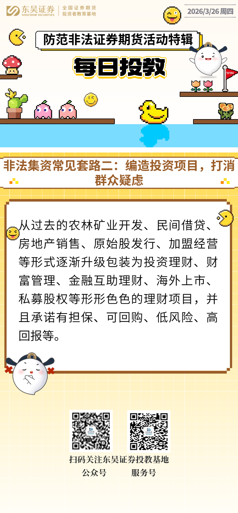 每日投教 | 【2026年03月26日】非法集资常见套路二:编造投资项目,打消群众疑虑