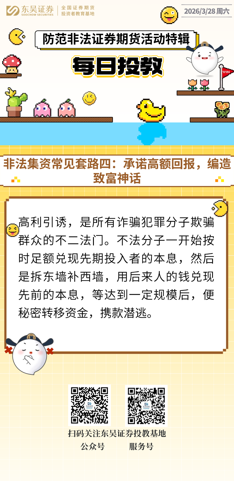 每日投教 | 【2026年03月28日】非法集资常见套路四:承诺高额回报,编造致富神话