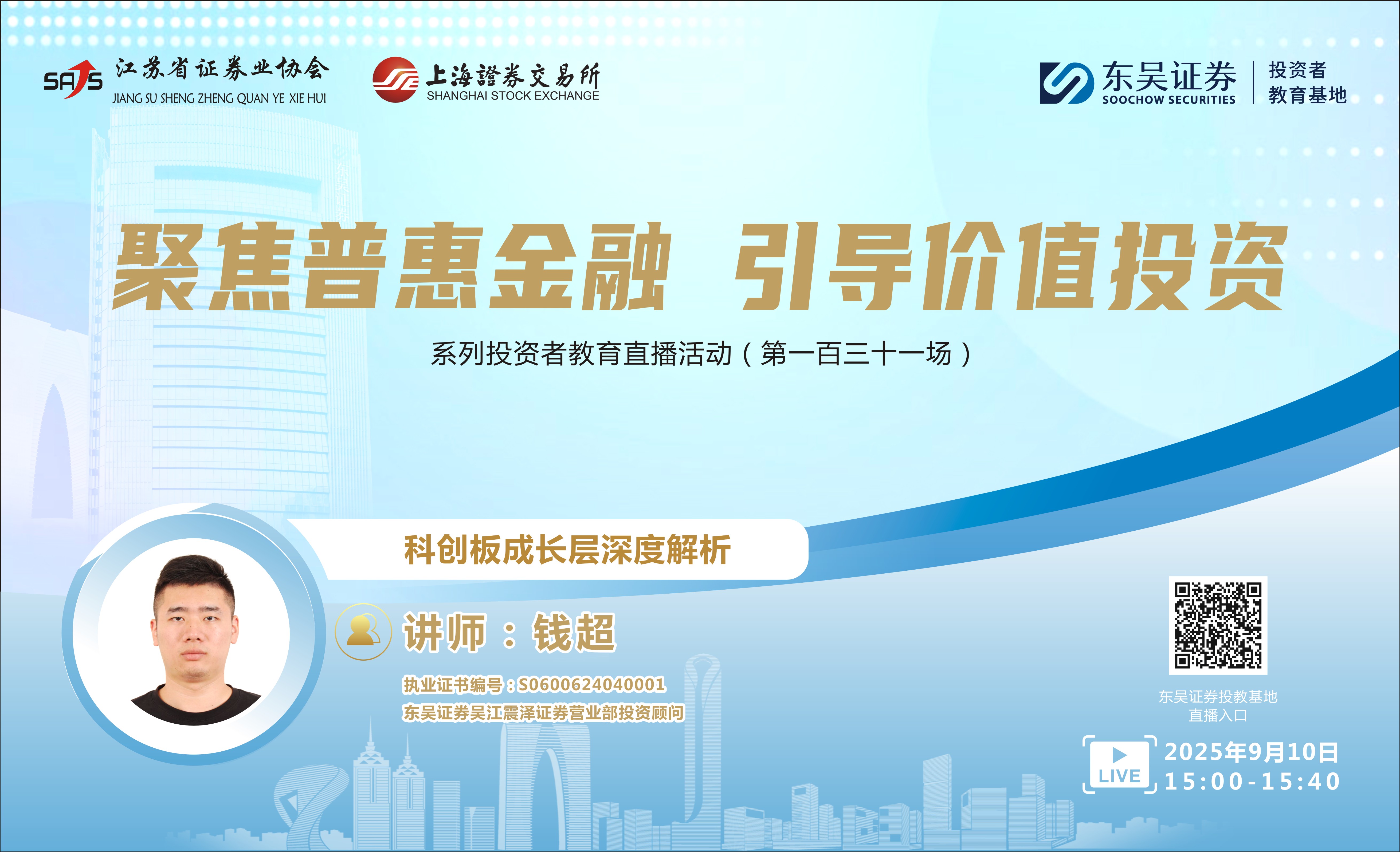 “聚焦普惠金融 引导价值投资”系列投资者教育直播活动《科创板成长层深度解析》( 第一百三十一场 )