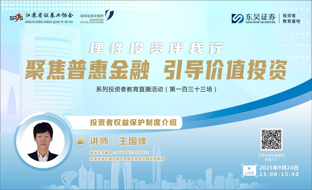 “聚焦普惠金融 引导价值投资”系列投资者教育直播活动《投资者权益保护制度介绍》( 第一百三十三场 )